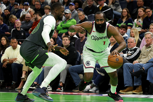 NBA杯赛小组赛关键一战,小卡因伤继续休战,哈登第一节登场10分钟,5投2中、三分2中2拿到6分3篮板3助攻和1次抢断,在哈登的带领下,快船和森林狼打得十分胶着,首节25-26落后1分。