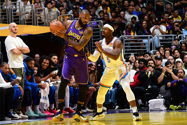 末节拉塞尔连中三分,詹姆斯翻身跳投助湖人反超1分,随后雷霆连中两记三分,浓眉吃饼轻松得分,两队再次同时哑火;关键时刻,克内克特连中三分输送火力,里夫斯连突带罚不断得分保持悬念,生死时刻,詹姆斯踩线失误,怒砸篮球泄愤,亚历山大轰进三分,詹姆斯三分打铁,克里斯蒂得分续命,亚历山大两罚全中,里夫斯边线发球失误,最终湖人不敌雷霆。