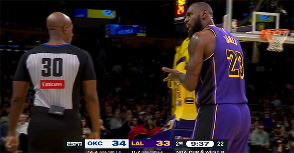 下半场,湖人第三节2-8落后到9分,随后詹姆斯和浓眉带队打出14-3的进攻高潮,可湖人扭转局面后集体哑火,这一节最后3分50秒湖人只拿到3分,不过雷霆进攻也不在状态,三节打完湖人69-71落后2分;这一节詹姆斯4投2中拿到4分2助攻,又出现走步违例。