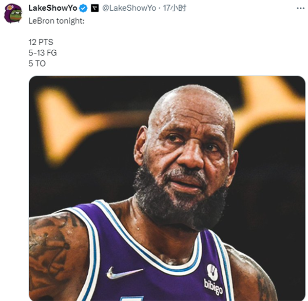 来源:24直播网12-01 16:4024直播网讯湖人在主场不敌雷霆,输掉杯赛生死战后正式无缘八强且被淘汰出局,即将40岁的詹姆斯又打出拉胯一战,全场全场13投5中、三分4中0拿到12分8篮板6助攻5失误,正负值-12全场最差。