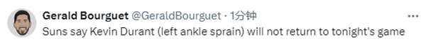 太阳队祸不单行!杜兰特90度崴脚受伤,提前退赛重创球队