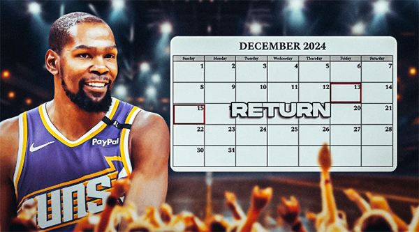 杜兰特复出时间敲定?或于近期火线驰援,其缺阵让太阳判若两队