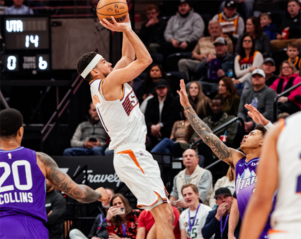 客场对阵西部倒数第二的爵士,太阳第一节轰下38分仍落后1分,杜兰特首节2投2中拿到7分还送出3次助攻,布克则是打满第一节,8投5中独砍12分。
