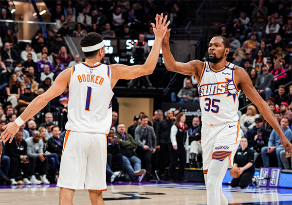 太阳破三连败困境!杜兰特与布克合取 64+18 赢下对攻,欢庆胜利
