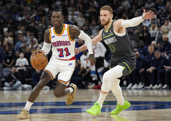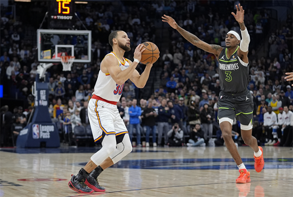 本赛季第四次大战森林狼,勇士13-0梦幻开局,直到7分33秒森林狼终于得分,森林狼得分艰难,但勇士进攻火力不减,库里和希尔德接连轰进4记三分球,施罗德也输送三分,第一节打完勇士34-12领先22分,库里首节6投4中、三分4中4独砍12分。
