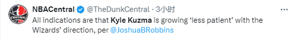 来源:24直播网01-27 11:1224直播网讯 北京时间1月27日,湖人旧将库兹马疑似与奇才管理层不和,据奇才队记Josh Robbins报道,种种的迹象表明,库兹马对奇才的建队方向感到越来越“不耐烦”;库兹马公开喊话:我不再迎合球队,我要做自己。