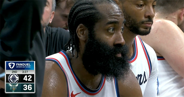 第二节快船进攻有所改善,单节30-25取得5分领先,这一节哈登仍未找回准星,外线继续打铁,强投三分惨遭奥科吉大帽,直到上半场还剩12秒,哈登才再次打进运动战进球;半场打完,哈登8投2中拿到6分4助攻2篮板。