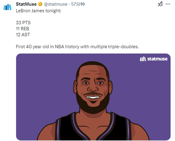 名嘴帕金斯更推道:一个40岁的老年人来到麦迪逊广场花园,上演了GOAT级别的表演。在没有浓眉的情况下,他拿到33分11篮板12助攻,还带队赢球。