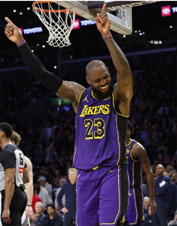 2023年2月8日,湖人主场130-133惜败雷霆的比赛中,詹姆斯命中一记后仰跳投,生涯总得分超越贾巴尔,正式加冕NBA历史得分王。