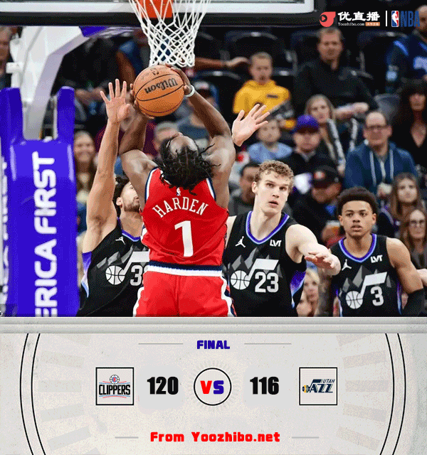 快船120-116逆转爵士 哈登32+10+7 鲍威尔41分 西蒙斯首秀12+8+6