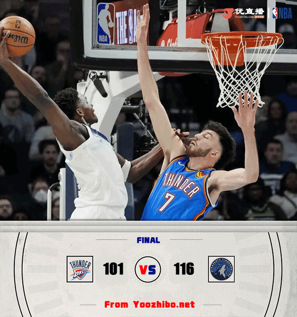 森林狼116-101终结雷霆 里德27+14+7 亚历山大21中6
