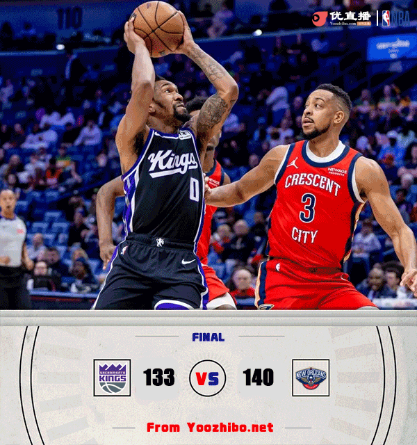 加时赛,鹈鹕持续展现出强劲的状态,迅速将比分拉开到7分。国王在后段努力反扑,试图缩小分差。鹈鹕的麦科勒姆在这一阶段表现抢眼,砍下11分,并命中3记三分。经过一番激战,鹈鹕最终以140-133赢下比赛。