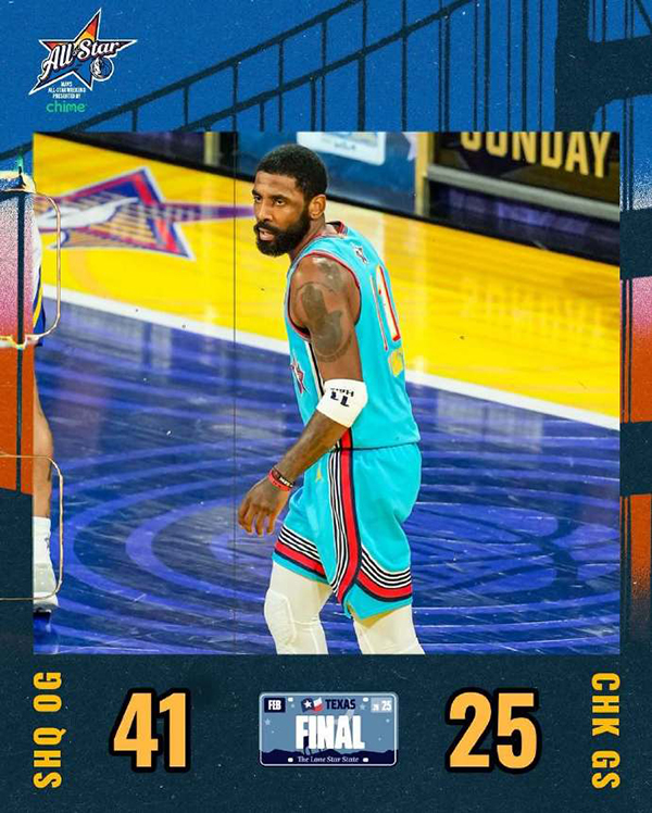 奥尼尔队:塔图姆15分4板2助、库里12分4板1助、欧文7分3板2助2断、杰伦-布朗4分1板、哈登3分2板4助、杜兰特2板、利拉德1助