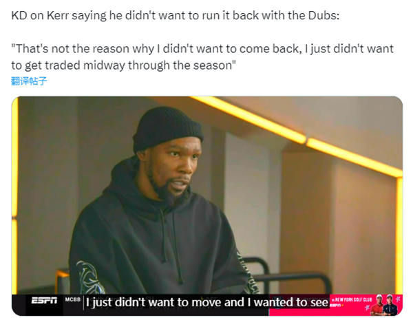 杜兰特首度回应拒回勇士:与追梦无关,只为赛季完整