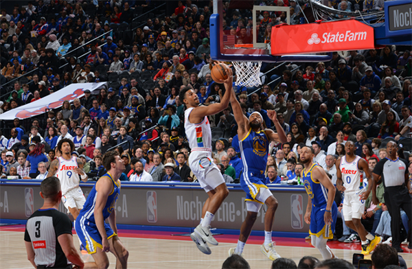 末节乔治带领76人一波攻势领先到10分,随后费城进攻断电,被勇士一波13-3扳平比分,关键时刻亚布塞莱输送三分,格雷姆斯强硬突破上篮,76人再次掌握主动权,比赛还剩55.5秒,格雷姆斯外线造追梦犯规,三罚一中,勇士连续丢篮板,乔治制胜一击以及罚球杀死比赛,最终76人126-119击败勇士;赛后马克西为格雷姆斯浇水庆祝,恩比德咧嘴大笑十分开心。