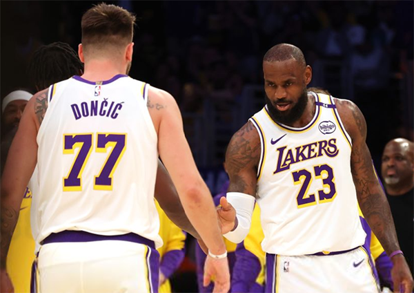 本赛季湖人对阵快船的战绩为3胜1负,东契奇两战快船分别拿到31分5助攻2篮板和29分9助攻6篮板,并且带领湖人拿下胜利;今日洛城德比四番战,詹姆斯和东契奇一度带队领先到21分,比赛还剩3分06秒,湖人107-96领先11分,之后湖人哑火被快船两记三分追到5分,不过生死时刻快船连续投丢三分,最后时刻东契奇失误被抢断,詹姆斯把握机会,追身钉板大帽邓恩,最终湖人拿下胜利。