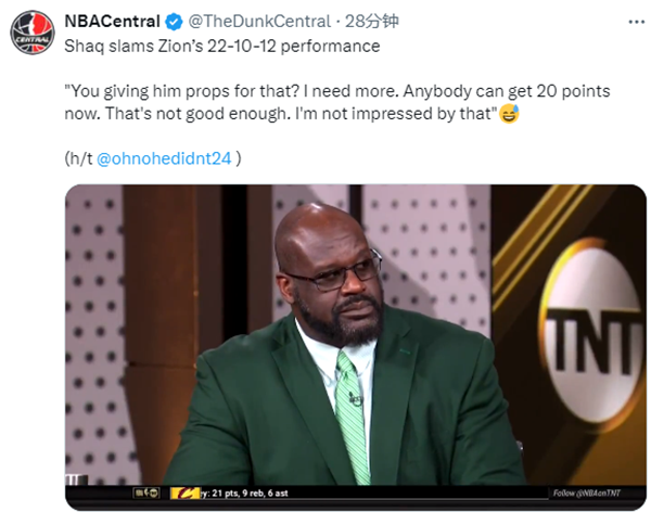 这是锡安本赛季第二次也是生涯第二次拿到三双,12次助攻创生涯新高;不过奥尼尔对锡安的表现仍不满意,鹈鹕击败快船赛后,奥尼尔表示:你为他那样的表现鼓掌叫好吗?我需要更多。现在任何人都能得20分。那还不够好,我对那种表现没什么印象。