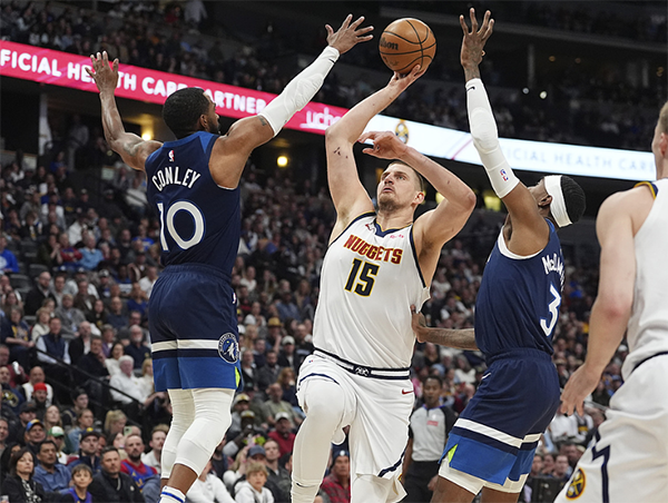 森林狼三杀掘金,约基奇34分难救主,掘金主场惨败