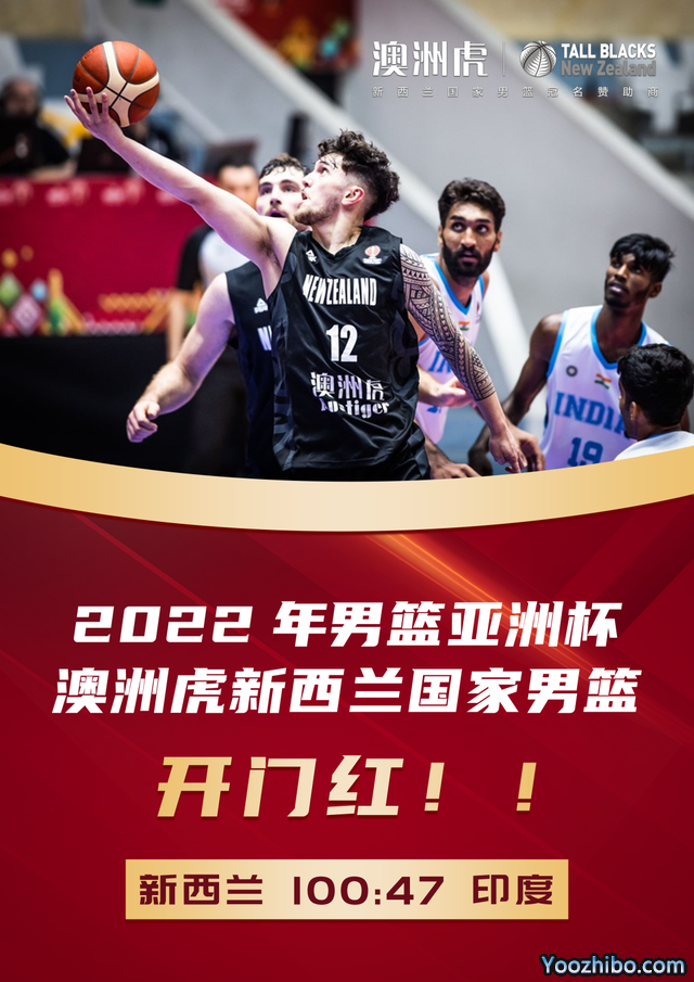 24直播网讯 北京时间7月13日,2022男篮亚洲杯第二比赛日打响,在刚刚结束的比赛中,身披澳洲虎战袍的新西兰男篮以100-47狂胜印度男篮,取得开门红。