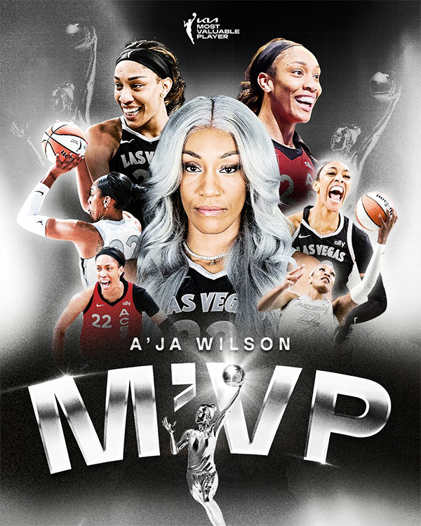 凭借出色的表现,阿贾-威尔逊获得全部67张第一选票,总共670分冠绝联盟,全票夺得WNBA本赛季年度最有价值球员大奖,这是阿贾-威尔逊个人第3座MVP奖杯,2020、2022年她都曾斩获WNBA的MVP奖项;阿贾-威尔逊也成为辛西娅-库珀戴克之后WNBA史上第二位全票MVP得主。