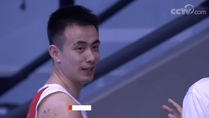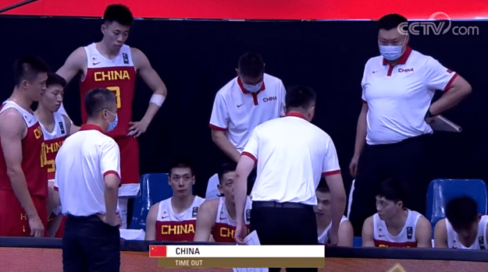 第二节,周鹏三分投的太大,赵岩昊篮下捡漏得分,随后男篮陷入得分荒,周鹏站着不动被撞倒却被吹假摔;沈梓捷大帽对手,连线赵继伟快攻上篮,徐杰外线造犯规三罚全中,此节还剩1分多钟,赵继伟被撞出底线却吃到假摔犯规,当时赵继伟一脸苦笑,杜指导满眼怒火。
