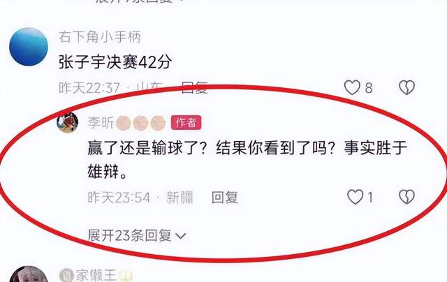 不少球迷也对当初李昕没有选张子宇进入国青感到耿耿于怀,在李昕社交媒体下留下。而李昕也毫不客气回应:“赢了还是输了?结果你们看到了吗?事实胜于雄辩。”“看了决赛之后,你还有什么好说我的吗?”“你不配说我,滚。”看得出来,李昕并没有认为自己当初没有选张子宇进入国青是个错误,而她和网友的骂战也在持续。