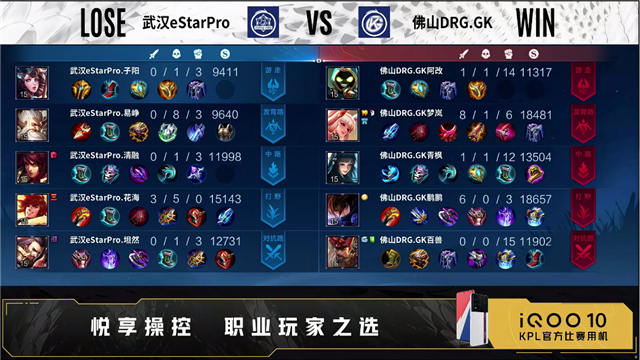 佛山DRG.GK禁用:大乔,明世隐,孙尚香,西施