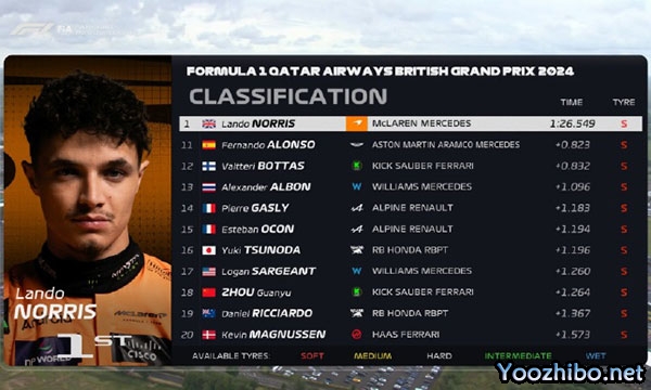 - 【录像】[腾讯]2024F1英国大奖赛第二次练习赛 圈速2024-07-06 10:50:36