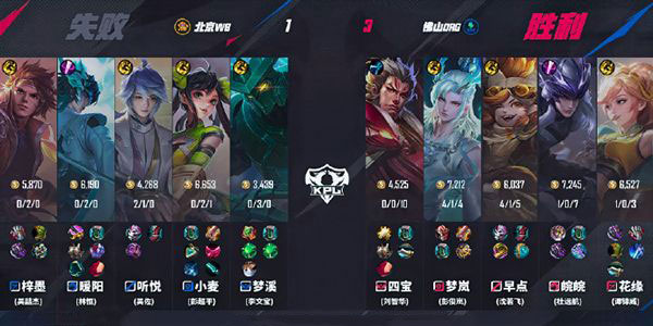 第一局,2分50秒,北京WB听悦操控干将莫邪,精准大招命中白起,拿下第一滴血。4分钟时风云突变,佛山DRG凭借精妙技能combo,连续击杀对方4人,并顺势夺得小暴君。5分30秒,上路激战,北京WB集火杀掉司空震,佛山DRG迅速支援,反杀夏洛特。此后双方有来有回,8分钟、9分40秒团战均1换1,佛山DRG还反掉红buff。10分20秒北京WB拿下暗影主宰,却在团战中被佛山DRG早点的甄姬斩获二连击破,佛山DRG乘势破上路高地。14分40秒,佛山DRG拿下暗影主宰,击杀马可波罗后,携龙兵摧毁水晶,先下一城。本局MVP为佛山DRG皖皖 (杜远航)白起!