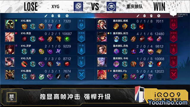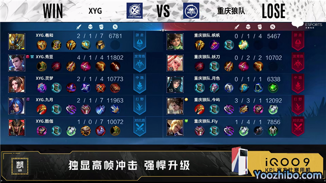 开局XYG对抗路、发育路换线。3分46秒重庆狼队拿下暴君。4分41秒XYG摧毁敌方发育路外塔。5分16秒XYG摧毁敌方对抗路外塔。5分25秒XYG拿下先知主宰。7分33秒XYG摧毁敌方发育路二塔。7分45秒中路团XYG打出1换2。8分40秒野区团XYG打出0换5团灭对手。9分17秒XYG拿下暴君。9分26秒XYG摧毁敌方中路外塔。10分14秒中路团重庆狼队打出0换2。10分21秒XYG摧毁敌方对抗路高地塔。10分53秒重庆狼队拿下暗影主宰。10分58秒重庆狼队中路击杀猪八戒。11分03秒XYG拿下暗影暴君。12分11秒XYG摧毁敌方中路二塔。12分20秒野区团重庆狼队打出0换2。13分10秒重庆狼队摧毁敌方中路外塔。15分25秒重庆狼队拿下暗影暴君。15分40秒暗影主宰处团重庆狼队打出2换4。16分53秒重庆狼队野区击杀澜。17分32秒重庆狼队摧毁敌方发育路二塔。18分16秒重庆狼队摧毁敌方对抗路二塔。19分钟重庆狼队对抗路击杀猪八戒。19分30秒重庆狼队拿下暗影暴君。20分05秒重庆狼队摧毁敌方中路高地塔。21分10秒重庆狼队拿下风暴龙王,团战重庆狼队打出1换4。21分43秒重庆狼队摧毁水晶拿下比赛。