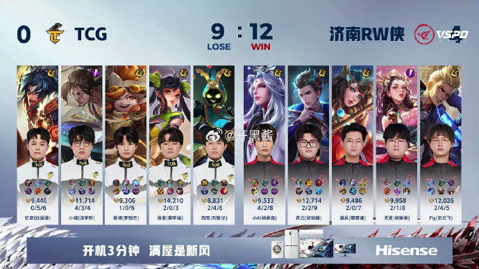 第四局,双方前期依旧不分伯仲。此局,RW侠依靠阵容中杨玉环加小明的拉扯优势持续推进,成功抓住对手失误。决胜团中,TCG试图击杀对面C位但未能成功,RW侠顺势一波终结比赛,本局MVP为小A(杨荣鑫)的明世隐。