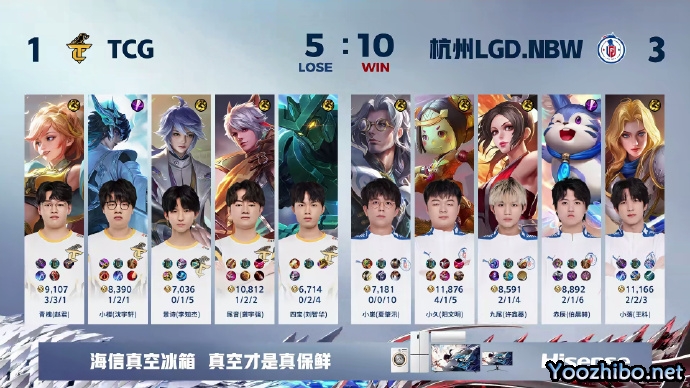 LGD.NBW在前中期发挥出色,成功拉开经济优势。中后期的团战中,开团点充足,小落的夏洛特和九尾的不知火舞多次关键切入,鲁班父子的输出也极为可观。在最后一波团战中,LGD.NBW直接平推TCG,赢得了大场比赛的胜利。本局MVP依然为LGDNBW的小落,他的夏洛特发挥关键。