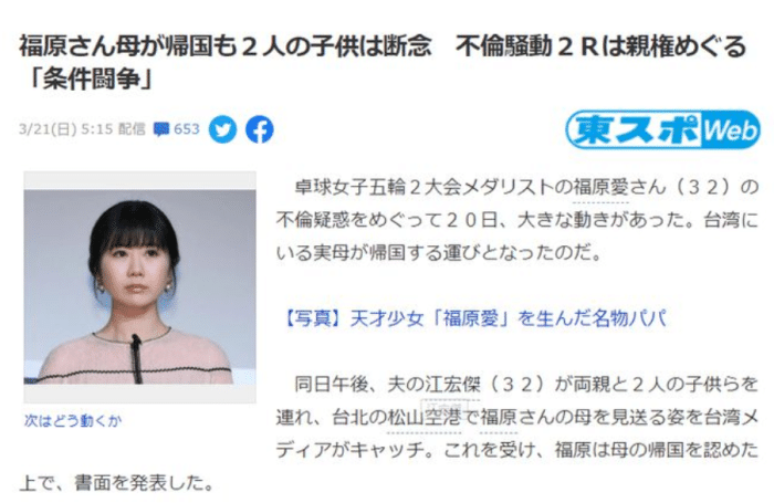 曝福原爱正式通知丈夫离婚!孩子抚养权成争夺关键,福原爱处弱势