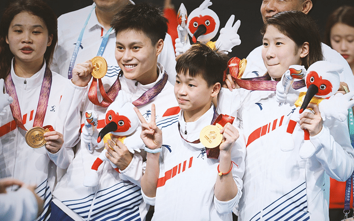 来源:24直播网09-07 09:5624直播网9月07日讯全运会第一个引发全民关注的项目是跳水女子团体,全红婵所在的广东队成功夺冠,河北队和东道主陕西队斩获银牌和铜牌。这其中大家关注的焦点是新科奥运会金牌得主全红婵,她的表现也很出色,在自己的10米台项目中,力压张家齐、陈芋汐等人拿下第一名,为广州队贡献413.90分。6日晚上所有比赛结束,全红婵与队友们站上最高领奖台,一起庆祝拿下全运会跳水首金。