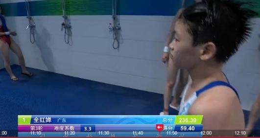 出现严重的失误,这一条全红婵仅仅拿到了59.4分,这对于她来说是一个很低的分数。207C,全红婵再一次在这个动作上出了问题,事实上,在全红婵出发全运的时候,她的两个启蒙恩师陈华明和郭艺就一直强调了207C对于全红婵的重要性,要知道哪怕在东京奥运会的预赛和半决赛,这个动作都一度成为全红婵拖后腿的存在,这也是两个恩师不断提醒和担心的事情,可是不幸的是,在预赛中,全红婵还是在这个动作上吃亏了。