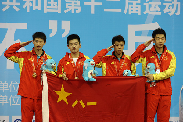 男团冠军:解放军队,女团冠军:山东队,男单冠军:马龙(京),男双冠军:周雨/樊振东(解放军),女单冠军:李晓霞(鲁),女双冠军:曹臻/木子(解放军),混双冠军:马龙/丁宁(京)
