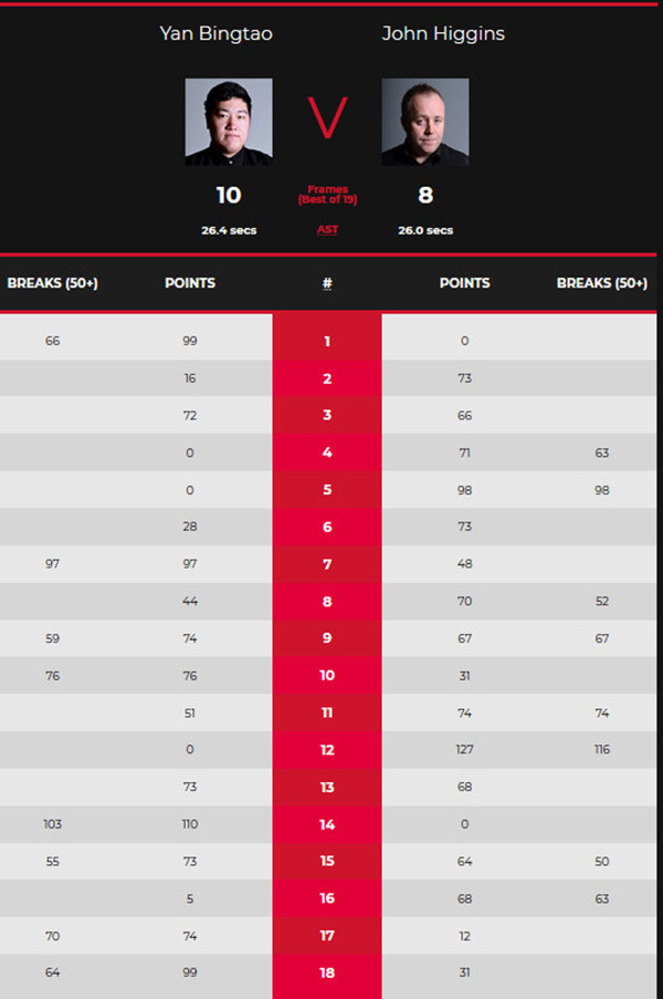 - 【录像】[优酷]2021斯诺克大师赛决赛 颜丙涛vs希金斯 下半场录像2021-01-18 10:56:23