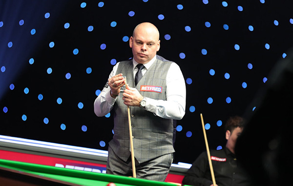 15分钟局间休息后,第5局中颜丙涛终于通过一杆长台率先上手,连得8分后防守出现摔袋,此后颜丙涛两度通过长台上手,24-2后贴咖啡球做防守。宾汉姆解球罚分直接漏中袋,颜丙涛随后围球打到超分拿下这局,扳回一局总分2-3落后。