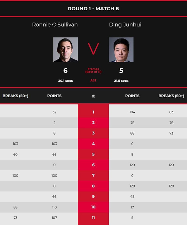 - 【录像】[优酷] 2021斯诺克大师赛第1轮 奥沙利文vs丁俊晖 全场录像2021-01-14 12:41:36