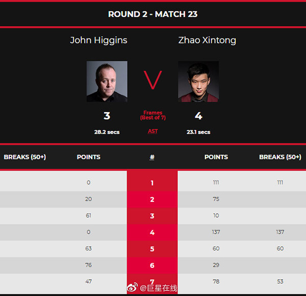 - 【录像】[优酷] 2020斯诺克世界大奖赛第2轮 希金斯vs赵心童 全场录像2020-12-19 02:14:18