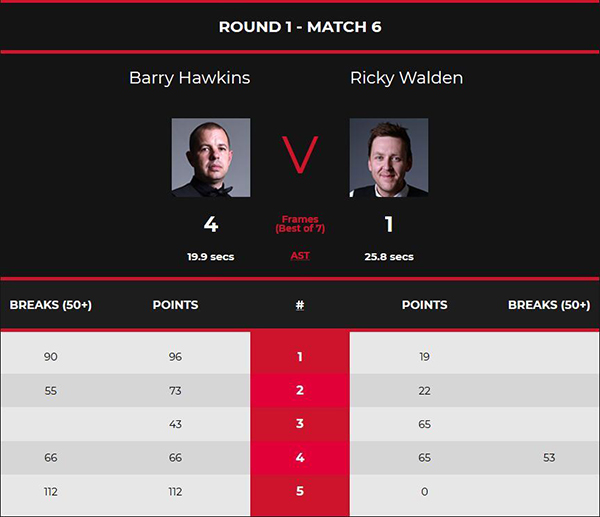 12月15日 斯诺克世界大奖赛第一轮 巴里-霍金斯vs里奇-沃顿 全场录像回放