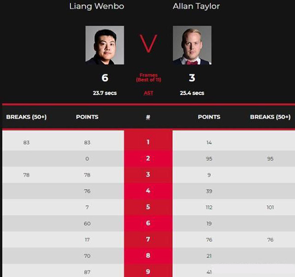- 【录像】[优酷] 2020斯诺克英锦赛第1轮 梁文博vs艾伦·泰勒 全场录像2020-11-27 09:00:55