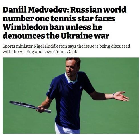 丢世界第1后,曝梅德韦杰夫或被温网禁赛!英部长:除非公开谴责战争