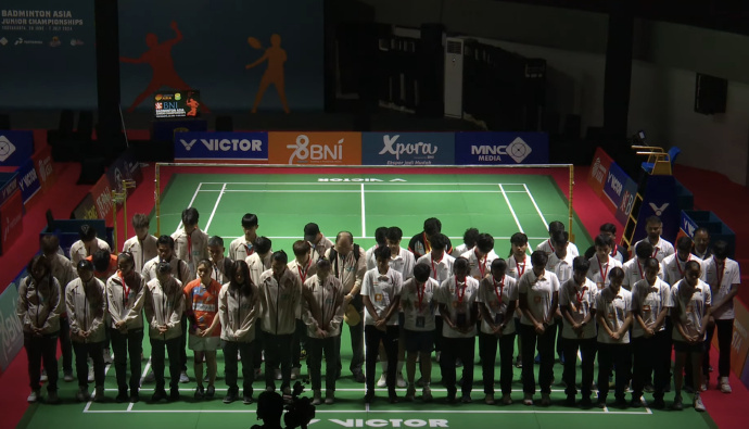 来源:24直播网07-01 16:3924直播网讯 北京时间7月1日,在今日羽毛球亚青赛团体赛开赛前,亚羽联组织所有在场人员,为不幸离世的国羽17岁男单小将张志杰默哀。