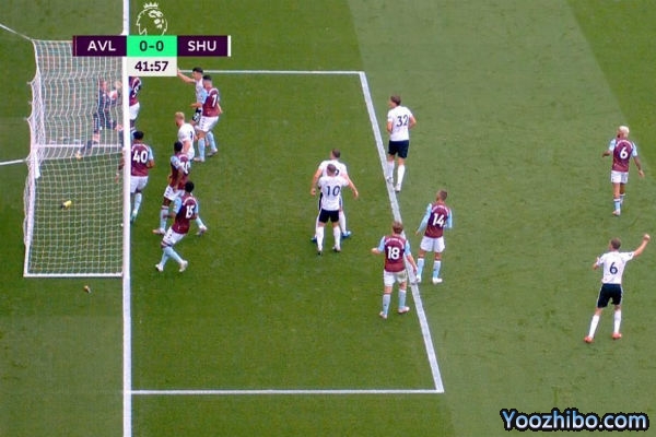 比赛进行到第42分钟,谢菲联任意球开到门前,维拉门将尼兰德将球抱住并后退,画面显示皮球已经整体过了门线,谢菲联球员纷纷示意球进了,由于其他客观因素导致进球并未被判有效。