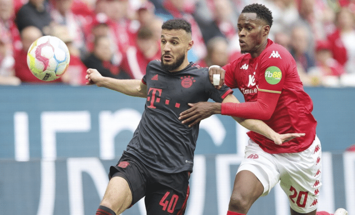 比赛第29分钟,拜仁抓住了机会,坎塞洛从左边路带球突破,内切后起右脚传中,找到了马内,后者头球破门,拜仁1-0领先;比赛第65分钟,拜仁后防线开始大雪崩,美因茨边路传中强攻,阿若克门前补射破门,美因茨1-1拜仁;比赛第73分钟,奥尼西沃在禁区内左侧肋部横传,中路前插的巴雷罗得球顺势推射破门,美因茨2-1拜仁;比赛第77分钟,阿龙-马丁在禁区左上角直接劲射破门,美因茨3-1逆转击败拜仁。