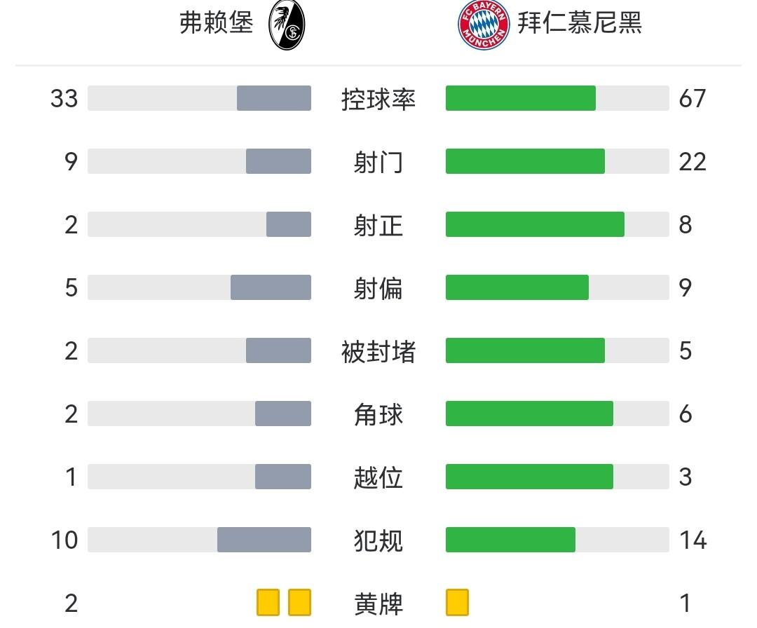 最终,拜仁1-0弗赖堡,取得联赛2连胜。