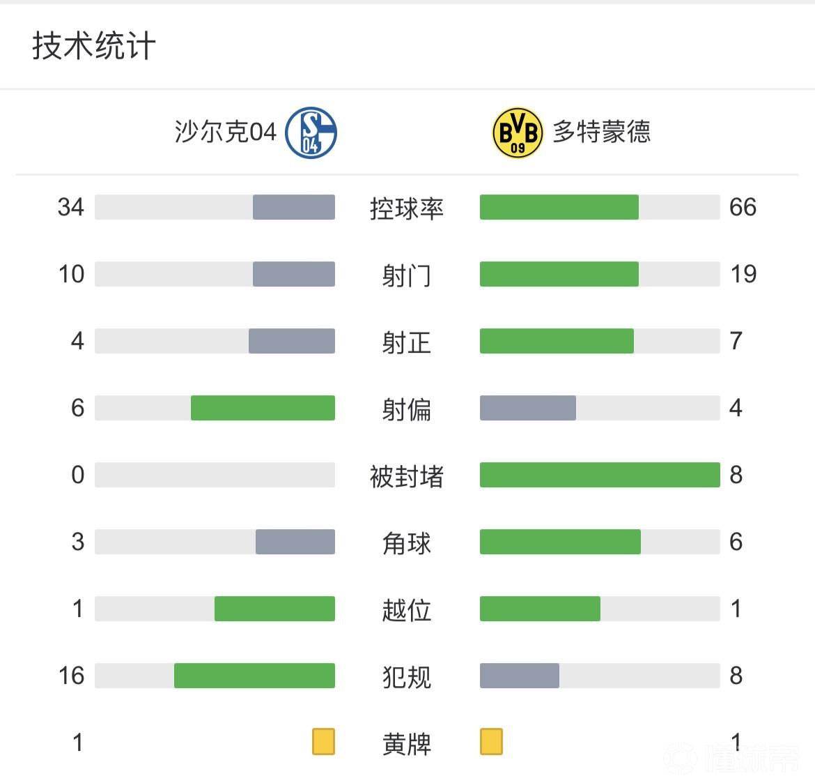 最终多特客场2-2战平沙尔克04,联赛8连胜势头遭终结。