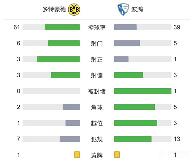 全场比赛结束,多特3-0波鸿。