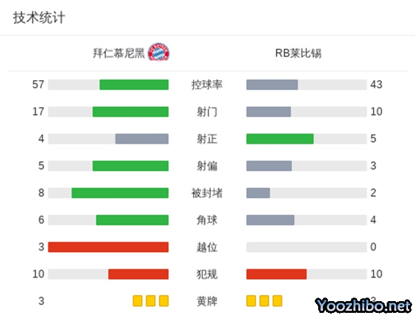 最终拜仁2-1莱比锡距榜首8分。